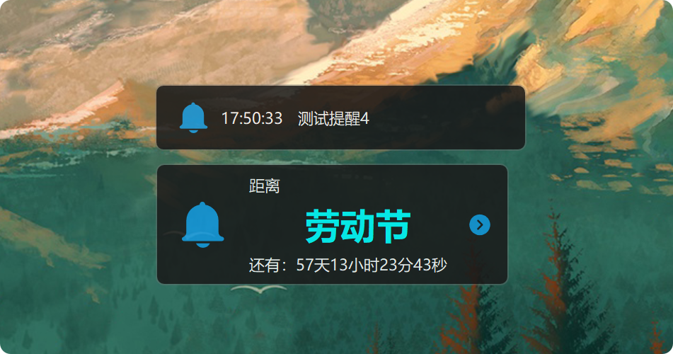 不仅支持计时、倒计时,还提供了提醒日和今日事项功能。简单配置时间和事件,就能创建这样的提醒浮窗。
